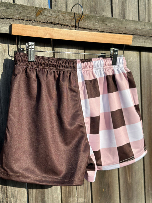 Chocolate Gingham Footy Shorts