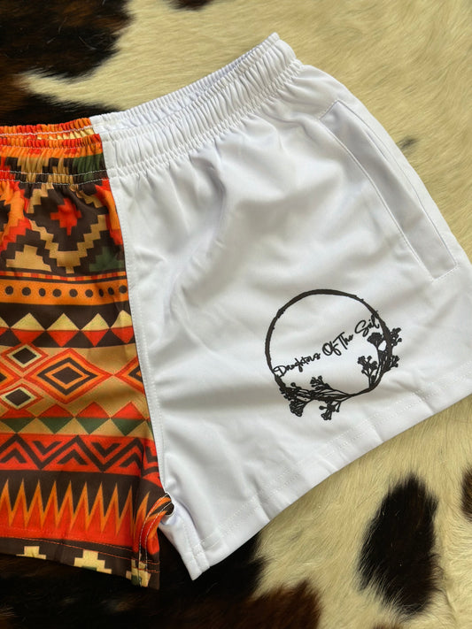 Orange Aztec Footy Shorts